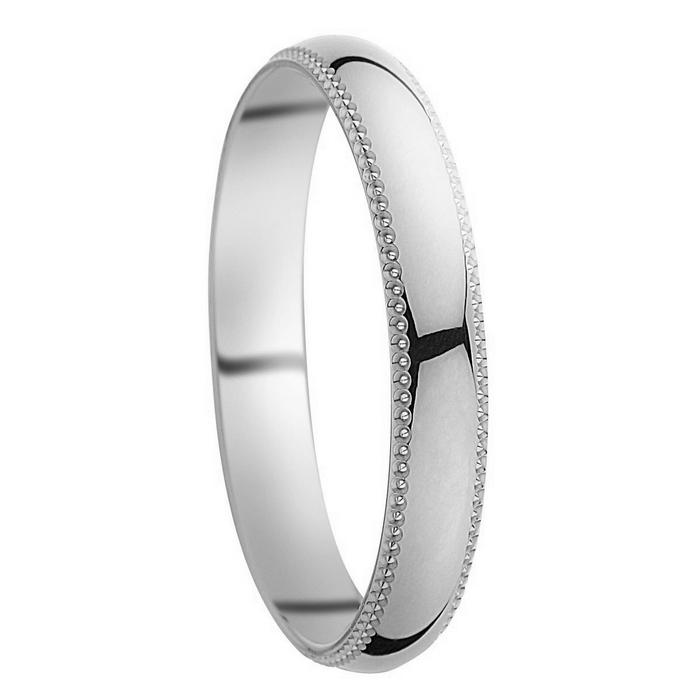 Alliance Mixte Bombée, Perlée sur les Bords, en Or Gris 750/1000 Palladié et Rhodié, Finition Polie pour un Éclat Sobre et Élégant.
