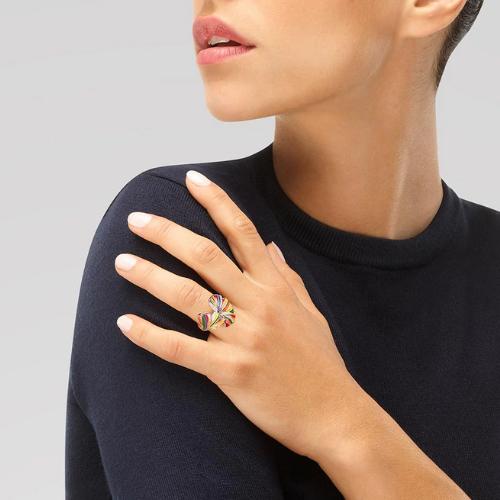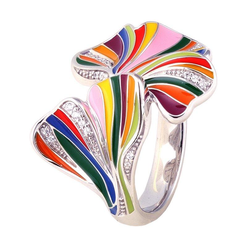 Bague Una Storia Gingko en Argent 925 Rhodié, Ornée d’Émail Multicolore Appliqué à la Main et Sertie d’Oxydes de Zirconium. Largeur de la plus grande feuille : 21,50 mm. Livraison Offerte en France Métropolitaine et en Corse. Bijouterie Cupillard Belfort : Boutique Officielle des Bijoux Una Storia Laqués à la Main. BG121226