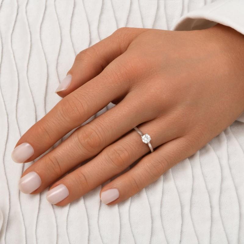 Le diamant de 0.50 carat, sélectionné pour sa brillance, est maintenu par un sertissage 4 griffes délicat qui laisse passer la lumière pour un scintillement optimal. C’est le choix parfait pour une bague de fiançailles intemporelle ou pour célébrer un anniversaire de mariage mémorable.