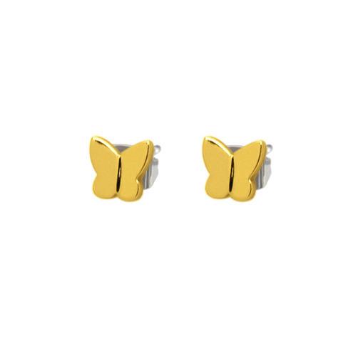 Boucles d'oreilles Enfant Motif Papillon en Titane Plaqué-Or Jaune Poli, Bijoux Boccia titanium Anti Allergie.