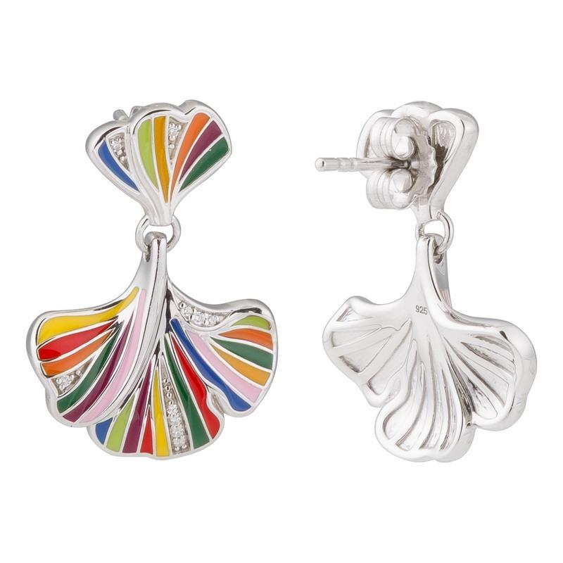 Boucles d’Oreilles Una Storia Gingko en Argent 925 Rhodié, Ornées d’Émail Multicolore Appliqué à la Main et Serties d’Oxydes de Zirconium. Hauteur : 26,50 mm, Largeur : 18,50 mm. Fermoir Poussette. Livraison Offerte en France Métropolitaine et en Corse. Bijouterie Cupillard Belfort : Boutique Officielle des Bijoux Una Storia Laqués à la Main. BO121226