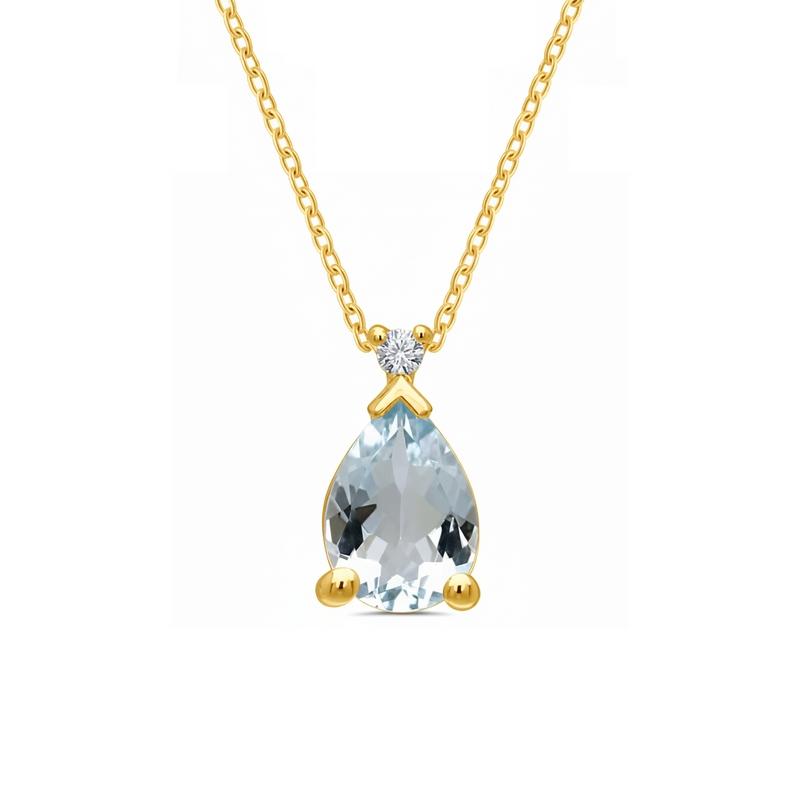 Éclat Céleste : Collier Goutte Aigue-Marine et Diamant en Or Jaune 750