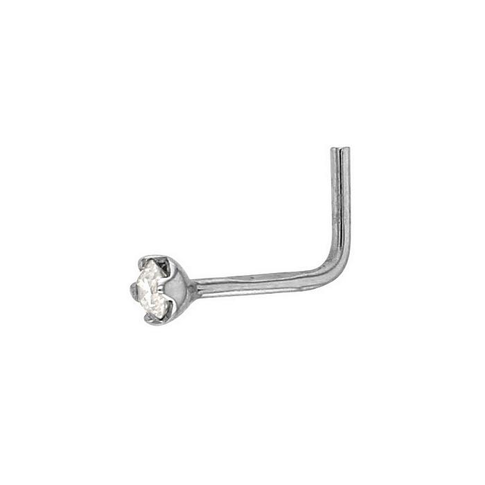 Piercing, Bijou de Nez Or Gris Rhodié 750/1000 (18 Carats) Diamant Naturel 0.05 Carat Serti 4 Griffes. Diamètre du Diamant : 2.30 mm. Tige en L ou Courbée sur Demande. Livraison France Métropolitaine et Corse Offerte. 304002BL