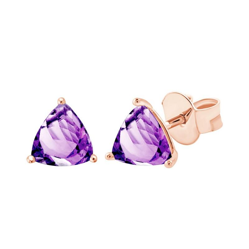Boucles d'Oreilles Améthystes Forme Trillion sur une Monture 3 Griffes en Or Rose 750/1000 (18 Carats).