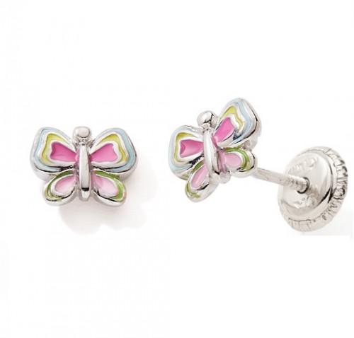 Boucles d'oreilles en argent 925/1000 rhodié Papillons laque multicolore avec des fermoirs qui se vissent. Idéales pour les enfants. C3051V