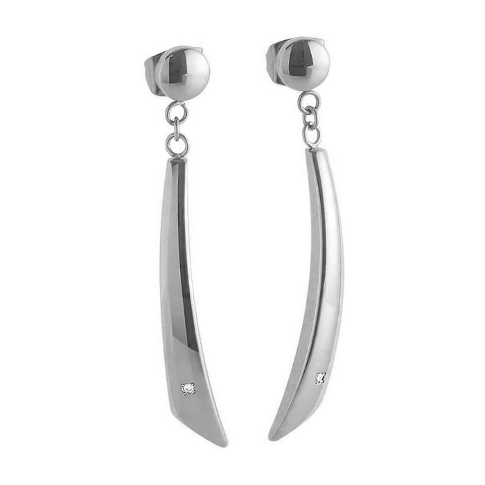 Boucles d'Oreilles Pendantes Titane Poli Serties Diamants Naturels (2x0.01 Carat), Boccia Titanium.