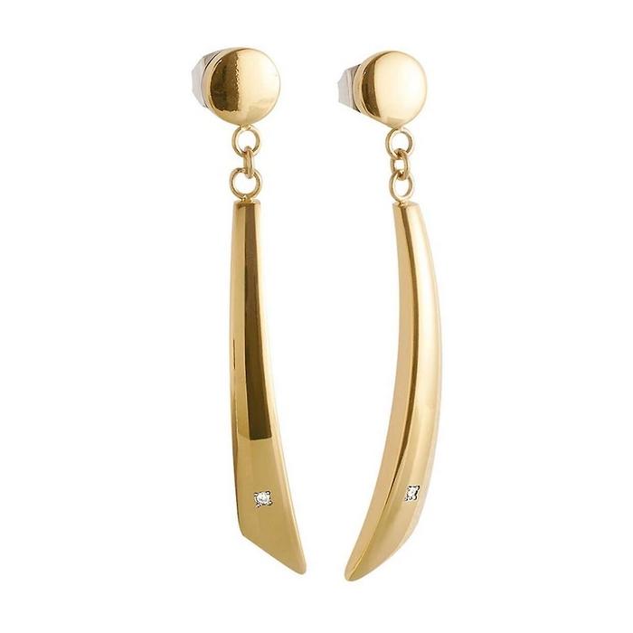 Boucles d'oreilles pendantes Boccia en titane poli plaqué or jaune, serties de diamant naturel ( 2 x 0.01 carat), Boccia Titanium anti allergique.