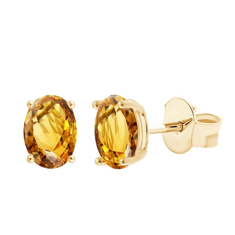 Boucles d'Oreilles Citrines Ovales 7 x 5 mm sur une Monture 4 Griffes en Or Jaune 750/1000 (18 Carats). Livraison France Métropolitaine Offerte. Collection Blooming Stones. CE28019CT