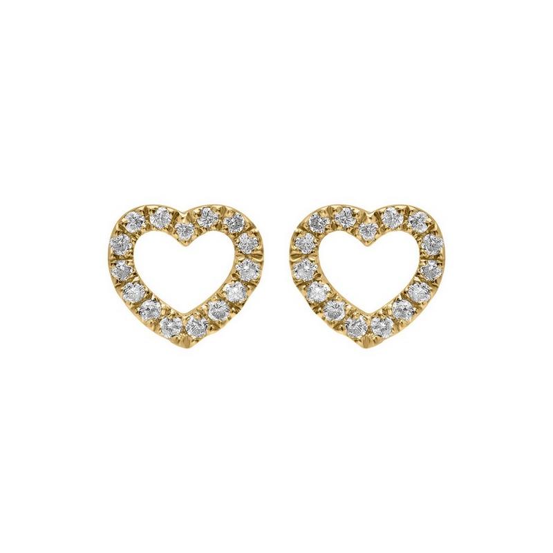 Boucles d'Oreilles Cœurs sertis de Diamants Naturels (0.12 Carat au total) en Or Jaune 750/1000 (or 18 carats).Hauteur d'un Cœur 6,30 mm et largeur 6,60 mm. Livraison France Métropolitaine et Corse Offerte. E56923