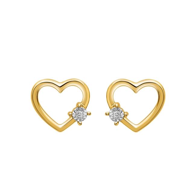Boucles d'oreilles femme Cœur en or jaune 375/1000 (9 carats) serties de Diamants Naturels Pastillés (0,008 carat au total), hauteur 6,60 mm et longueur 7,50 mm. Livraison France métropolitaine offerte. C68922