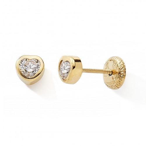 Boucles d'oreilles cœur en or jaune 375/1000 (9 carats) serties d'un oxyde de zirconium en forme de coeur.