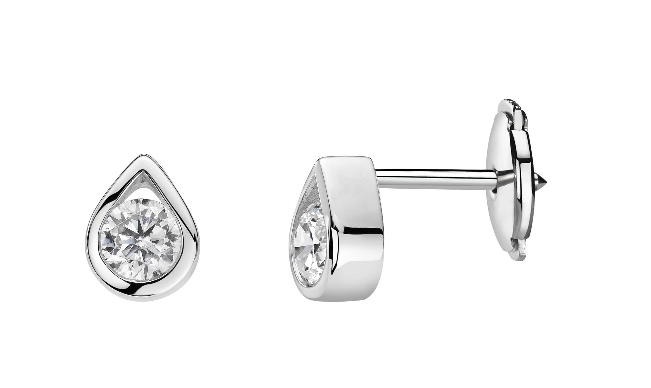 Boucles d'Oreilles Goutte Diamants Naturels 2 x 0.20 Carat (soit 0.40 Carat au Total) Qualité H-SI Sertis Clos en Or Gris Rhodié 750/1000 (18 carats) avec Fermoir Sécurité Style Alpa. Livraison France Métropolitaine Offerte. 32024