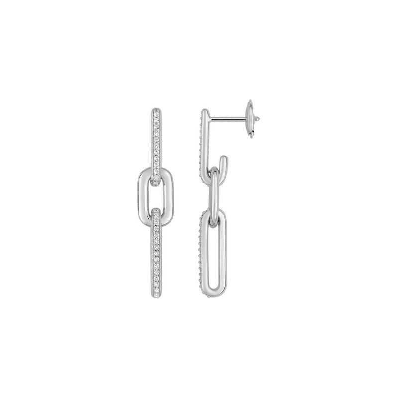 Boucles d'oreilles pendantes femme en argent de la collection Guy Laroche. Cette ligne "Géométrie et Architecture" est constituée de bijoux cossus en argent 925/1000 rhodié sertis d'oxydes de zirconium .