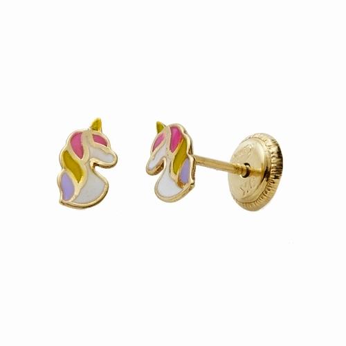 Boucles d'Oreilles Licorne Fermoirs Vissés Laque Multicolore Enfant en Or Jaune 750/1000 (18 carats).