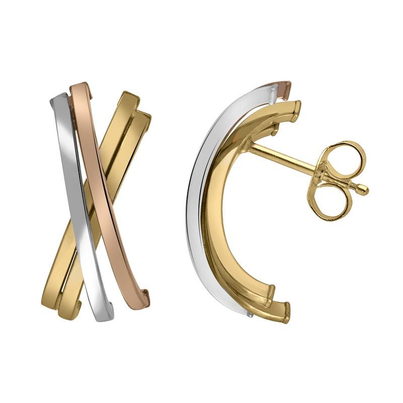 Boucles d'Oreilles Croisées Or 375 Tricolore - A79322