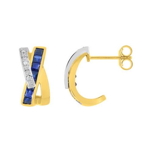 Boucles d'Oreilles Femmes Demi-Créole en Or 750/1000 (18 carats) Bicolore Serties de Saphirs Carrés et de Diamants Naturels. Livraison France Métropolitaine Offerte. MY209BSB4