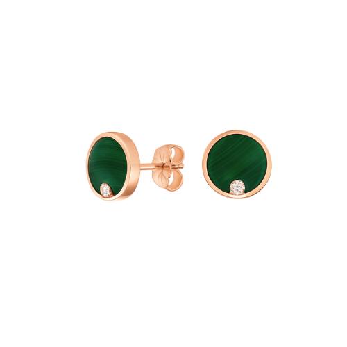 Splendide Boucles d'Oreilles en Or Rose 750/1000 (18 Carats) du Créateur Français Alain Clozeau, de la Ligne Éclipse, Pour Femme en Résine Nacrée Vert Bronze, Sertie de Diamants Naturels.