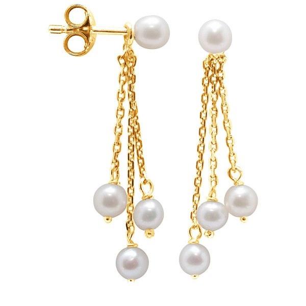 Boucles d'Oreilles Pendantes en Or Jaune 750/1000 (18 Carats) Munies de Perles d'Eau Douce Blanches pendantes, WK Monaco. Livraison France Métropolitaine Offerte. BOC 530 R4JWH