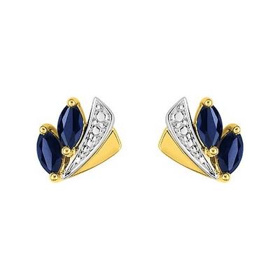 Boucles d'Oreilles Or Bicolore 750/1000 (18 carat) Serties de Deux Saphirs Naturels en Forme de Navette sur Chaque Boucle (0.47 Carat au Total). Livraison France Métropolitaine Offerte. IJ231BS