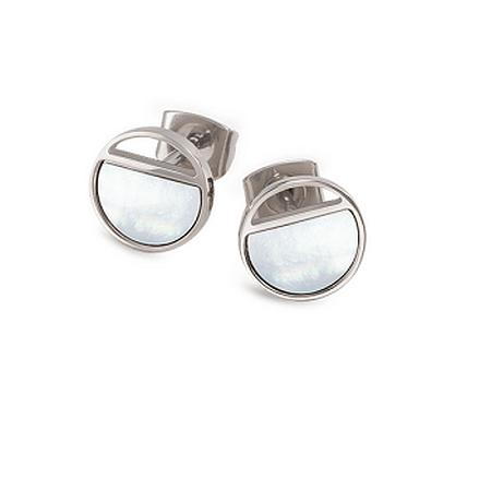 Boucles d'oreilles Boccia femme rondes en titane poli serties de nacre blanche,