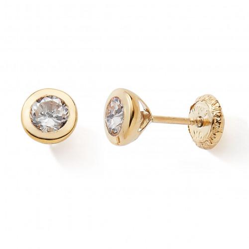 Boucles d'oreilles oxydes de zirconium ronds sertis clos en or jaune 375/1000 (9 carats) pour les enfants et les adultes.