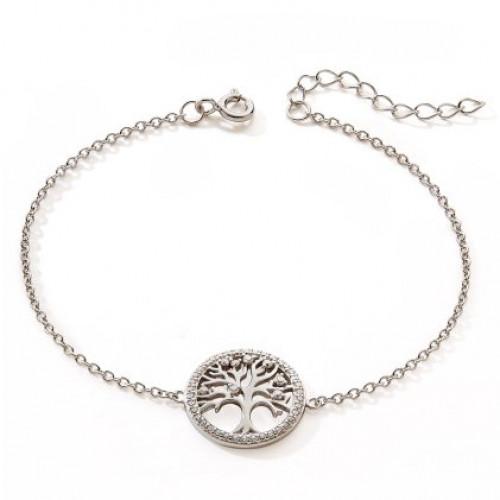 Bracelet femme motif Arbre de Vie en argent 925/1000 rhodié serti d'oxydes de zirconium.