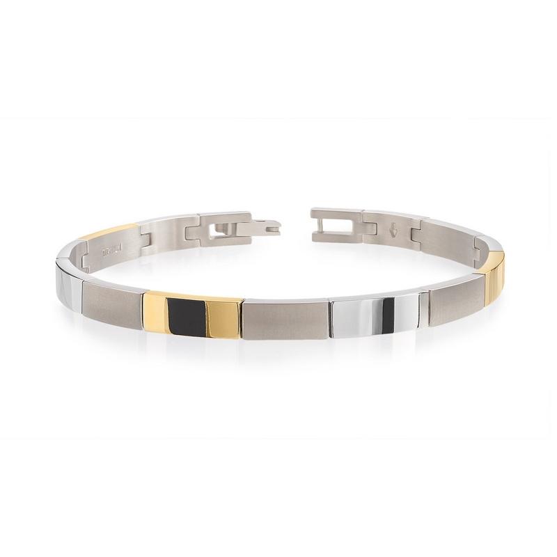 Bracelet Boccia mixte bicolore en titane mat et plaqué or jaune poli ,