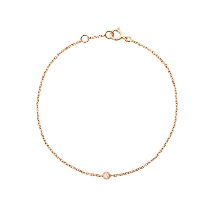 Bracelet femme de la collection Alain Clozeau, maille forçat ronde en or rose 750/1000 (18 carats) avec un diamant naturel H-SI serti clos (0.03 carat au total).