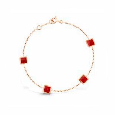 Bracelet Femme Alain Clozeau Motifs Carrés Résine Nacrée Rouge en Or Rose 750/1000 (18 carats).