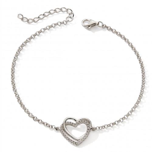 Bracelet femme coeurs entrelacés en argent 925/1000 rhodié dont un serti d'oxydes de zirconium.