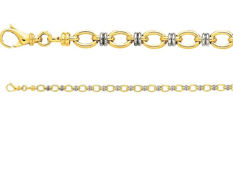 Bracelet or bicolore femme composé de maillons ovales et ronds bicolores creux en or jaune et or gris rhodié 750/1000 (18 carats) maillons ovales.