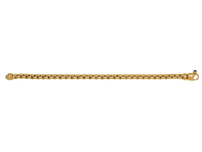 Bracelet Femme Maille Creuse Or Jaune 750/1000 (18 carats) Orné d'un Saphir Cabochon, Caplain Saint André. Largeur 5.00 mm, Longueur du Bracelet 20 cm Livraison France Métropolitaine Offerte. VLFR9256