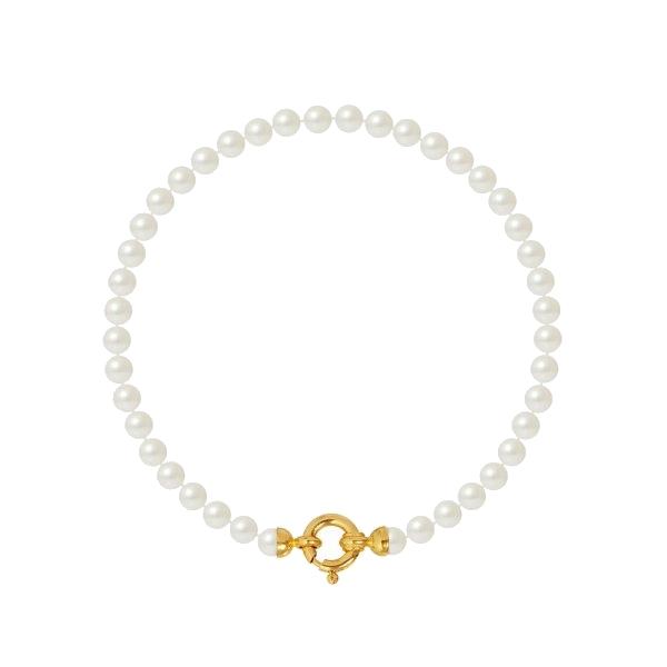 Bracelet avec des perles d'eau douce de 6,5-7 mm de diamètre muni un gros anneau ressort en or Jaune 750/1000 (18 carats). Livraison France métropolitaine offerte. BRC 657 AR3J