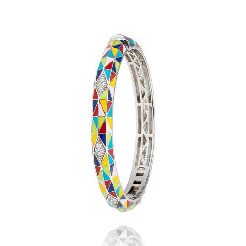Découvrez le Bracelet Rigide Ouvrant Una Storia de la Collection Bora-Bora en Argent Rhodié 925/1000, Sublimé par une Laque Colorée et des Oxydes de Zirconium Étincelants. Bijou Raffiné de Diamètre Intérieur de 56 MM, d'une Largeur de 8 MM et d'une Épaisseur de 5 MM. Livraison Offerte en France métropolitaine et en Corse. JO121223