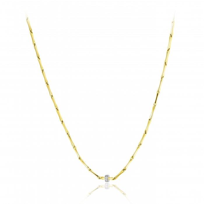 Collier creux Chimento de la ligne Bamboo Shine en or jaune 750/1000 (18 carats) avec un pavage de diamants naturels de 0.05 carat au total, serti griffes en or blanc.