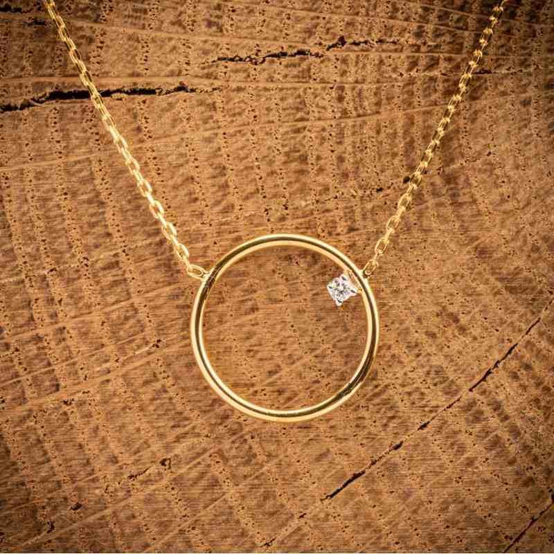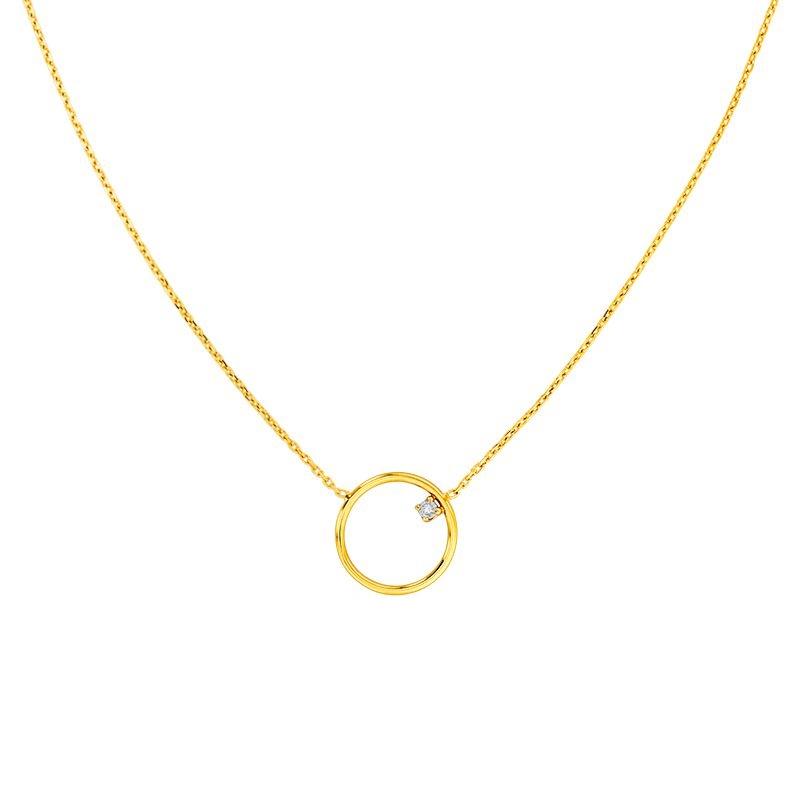Moderne, fin, discret et intemporel, le collier Cercle serti d'un diamant sur un décolleté ou un pull col cheminé apporte charme et sensualité. Quelle que soit votre tenue, il vous accompagnera tous les jours.