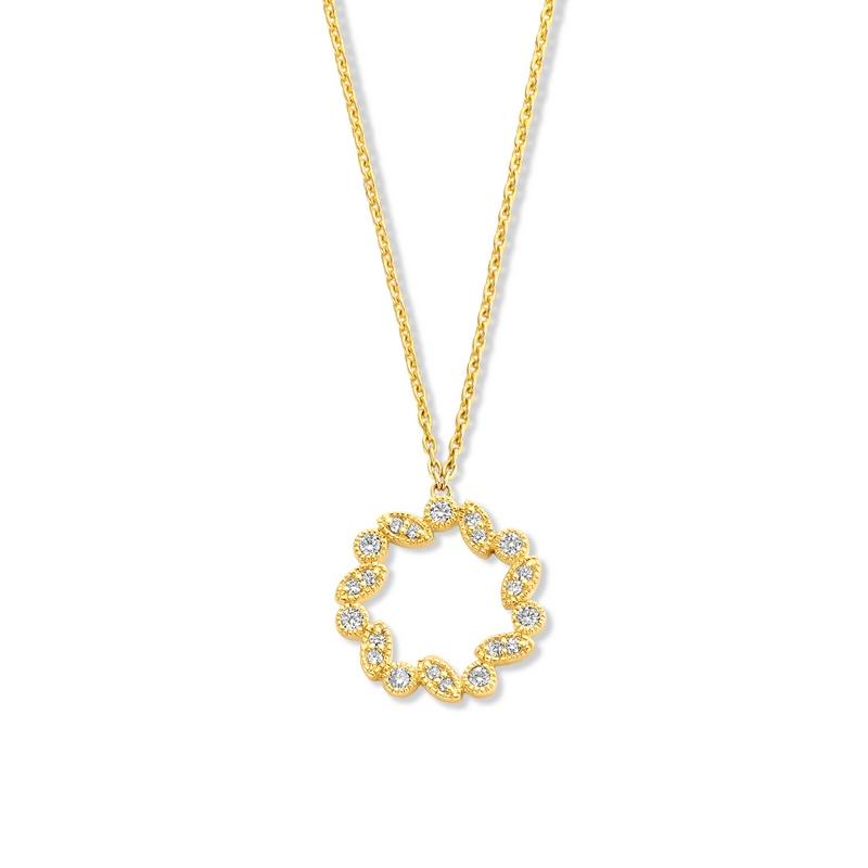 Collier Cercle Diamants Naturels (21 diamants pour 0,17 carat au total en qualité H-SI) maille forçat ronde en Or Jaune 750/1000 (18 carats), Longueur 42 cm avec un anneau intermédiaire à 40 cm. Livraison France métropolitaine offerte. 065796-A