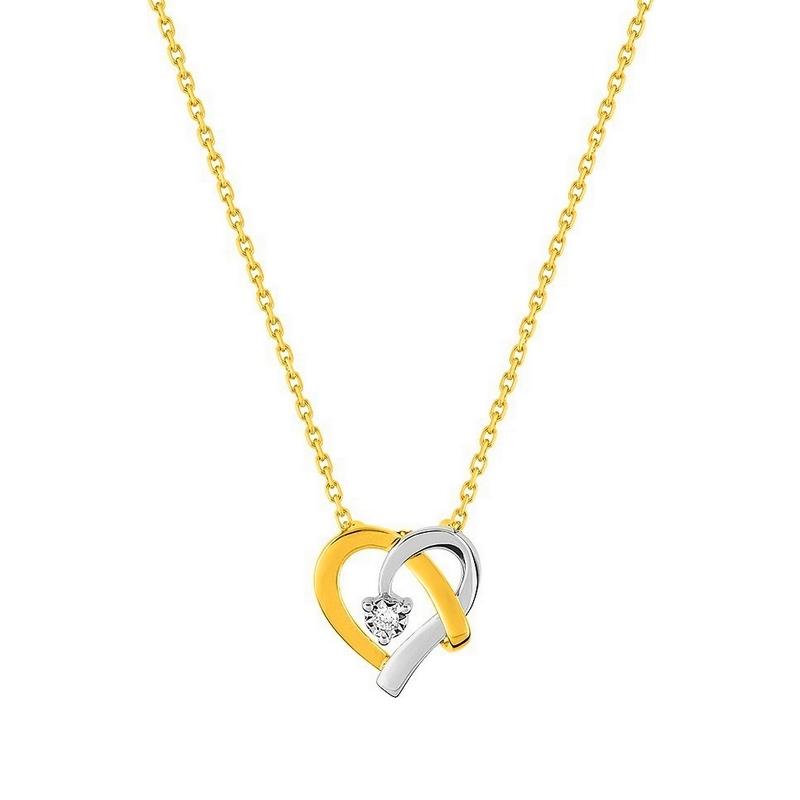 Collier femme en forme de cœur serti d'un diamant naturel pastillé de 0.02 carat, en or bicolore 750/1000 (18 carats), longueur 42 cm avec un anneau intermédiaire à 40 cm. Livraison France métropolitaine offerte. QJ528BB4