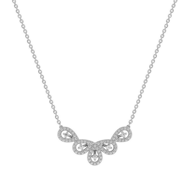 Collier draperie pour femme en or gris rhodié 750/1000 (18 carats) serti de diamants naturels en qualité H-SI (0.36 carats au total), chaine maille forçat ronde.