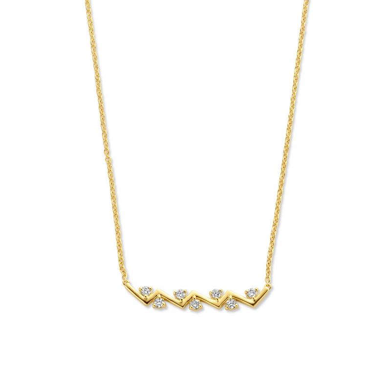 Cet élégant collier en or avec un motif en forme d'éclair entouré de diamants, arbore un design très actuel.