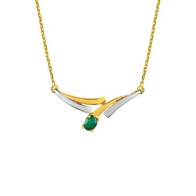 Collier femme émeraude naturelle serti griffes en or bicolore 750/1000 (18 carats).