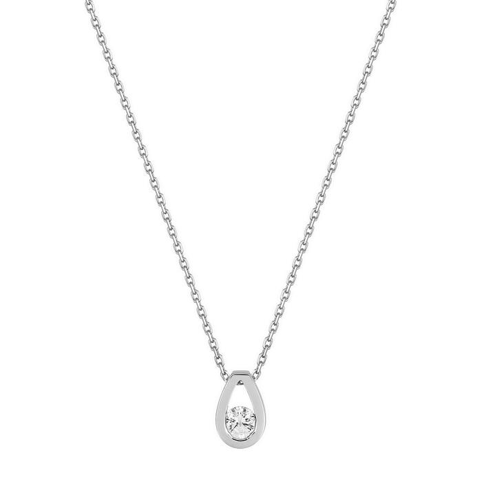 Collier or gris rhodié 750/1000 (18 carats) chaine forçat et pendentif en forme de goutte avec un diamant naturel serti semi clos 0.15 carat de couleur H et de pureté SI.