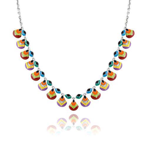 Ce Collier Una Storia Plumes de Paon en Argent 925/1000 Rhodié se Distingue par son Laquage Multicolore Appliqué à la Main sur ses Pampilles. Chaque Motif se Termine par un Œil Stylisé Aux Dégradés de Bleu et de Vert. La Chaîne Mesure 38 CM Avec Une Extension de 6 CM (Total 44 CM) et se Ferme par un Mousqueton. Chaque Pampille Mesure 8,60 MM de Large, 9,60 MM de Haut et 1,80 MM d’Épaisseur. Bijouterie Cupillard Belfort : Revendeur Officiel Des Bijoux Una Storia. CL121230