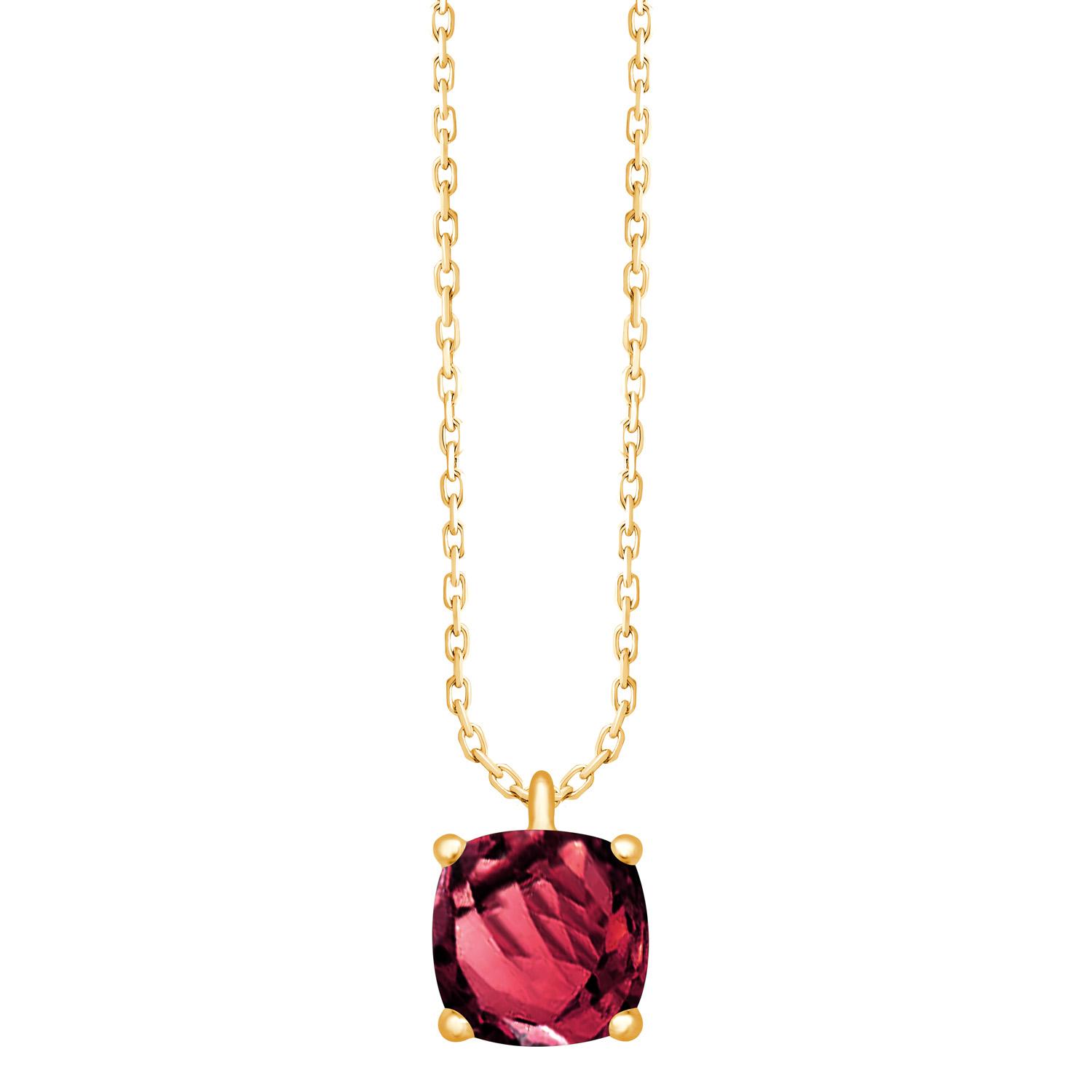 Collier Rhodolite en forme de coussin sur une monture 4 griffes en or jaune 750/1000 (18 carats).