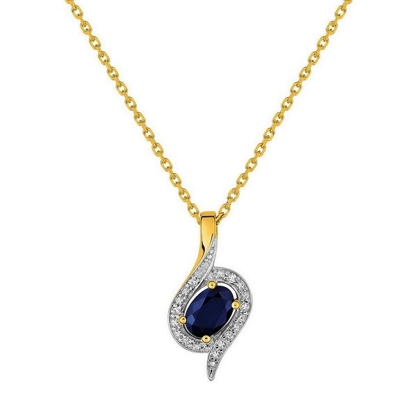 Collier femme Saphir 0.56 carat et diamant 0.03ct au total en or jaune et or gris rhodié 750/1000 (18 carats). Longueur 42 cm, hauteur du pendentif 17,80 mm et largeur 8.9 mm. Livraison France métropolitaine offerte. MZ528BSB4