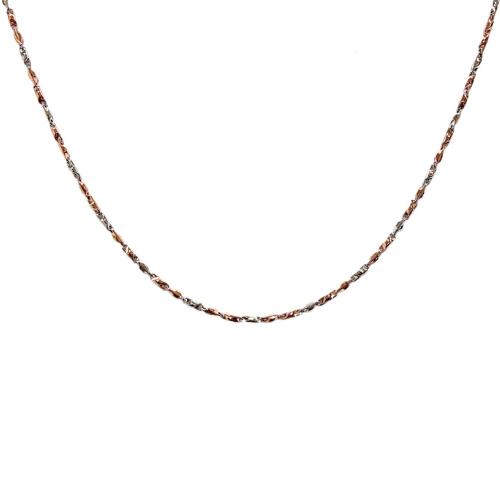 Ce Collier Valenzi Bicolore en Argent Rhodié 925/1000 et Vermeil (Argent Plaqué Or Rose), Séduit par Son Design Épuré et Résolument Moderne. Longueur : 45 cm, Largeur de la Maille : 2,50 mm. Fabriqué en Italie. Livraison Offerte En France Métropolitaine et en Corse. Bijouterie Cupillard Belfort : Distributeur Officiel des Bijoux Valenzi. FA069-C PW