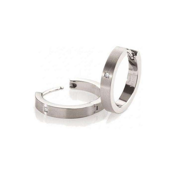 Créoles en titane mat serties d'un diamant naturel (poids total diamants 0.02 carat), Boccia Titanium anti allergique.