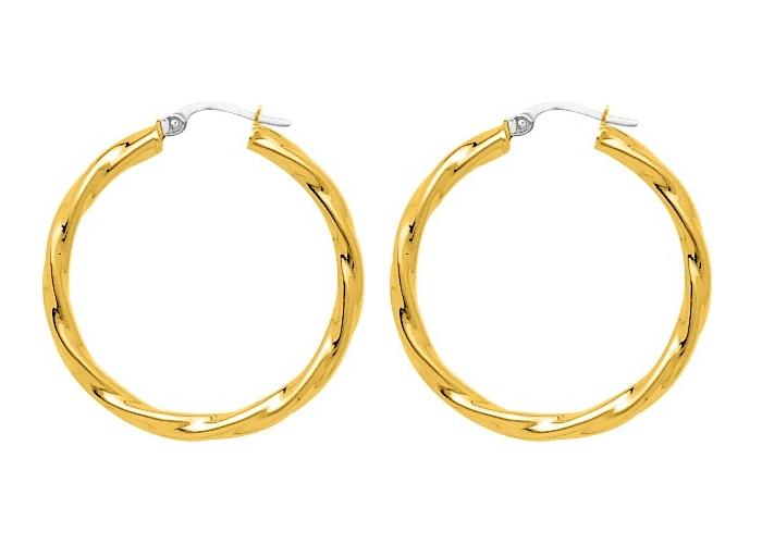 Créole Torsadée en Or Jaune 750/1000 (18 carats) pour Femme, Fil de 3 mm de Large et 25 mm de Diamètre Intérieur. Livraison France Métropolitaine Offerte. 2520