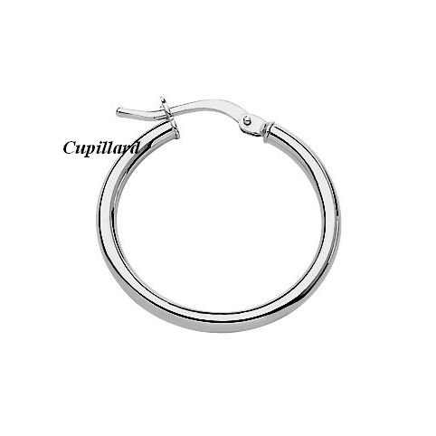Créoles Creuses, Unies et Lisses en Or Gris Rhodié 375/1000 (9 Carats), au Style Sobre et Lumineux. Leur Diamètre Intérieur de 20 MM et leur Fil Rond de 2 MM Assurent un Porté Confortable au Quotidien. Fermoir À Charnière Pratique et Sécurisé. Vendues Par Paire. Bijouterie Cupillard Belfort : Revendeur Officiel de Bijoux en Or. B52211