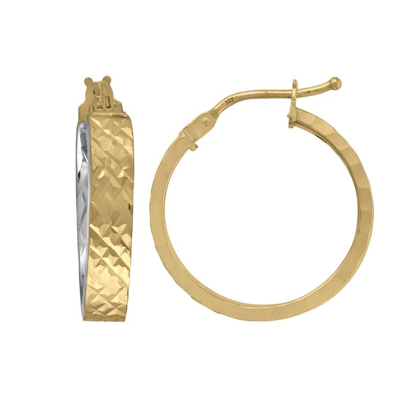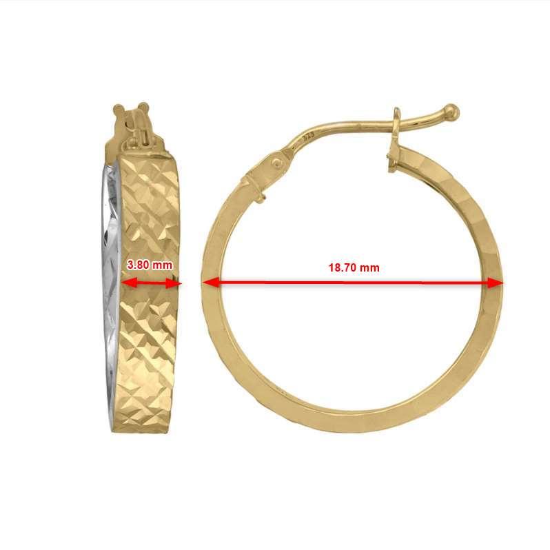 Créoles Creuses Rondes, Fil Rectangulaire, en Or Jaune 375/1000 (9 carats) et Rhodiage à Effet Diamanté (or jaune ciselé).